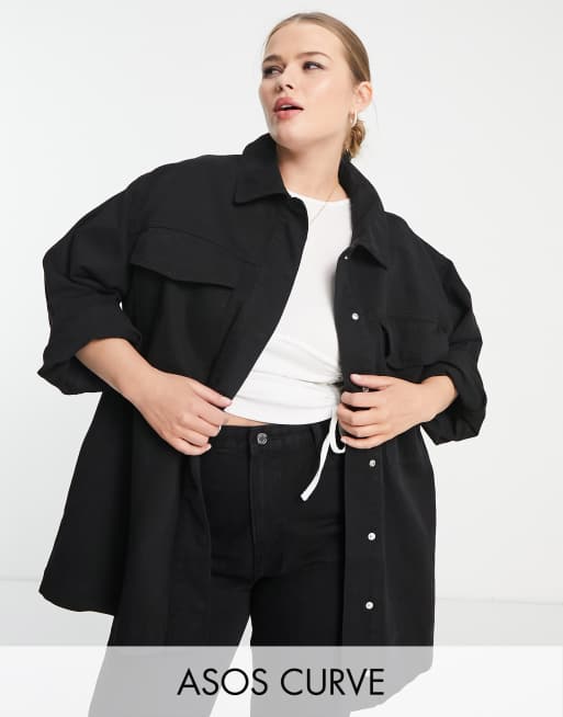 ASOS DESIGN Curve cotton pocket shacket in black