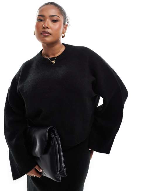 ASOS DESIGN Curve crew neck boxy jumper with wide cuff in black