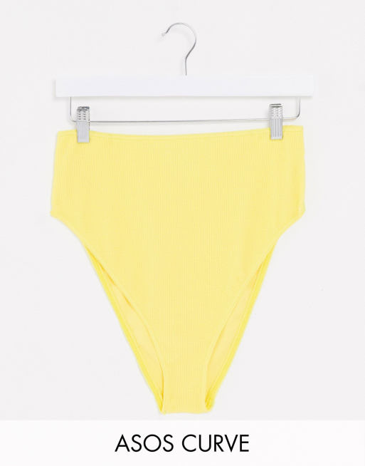 ASOS DESIGN Curve crinkle high waist bikini bottom in yellow