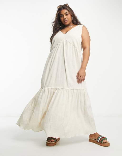 ASOS DESIGN Curve crinkle trapeze maxi sundress in natural
