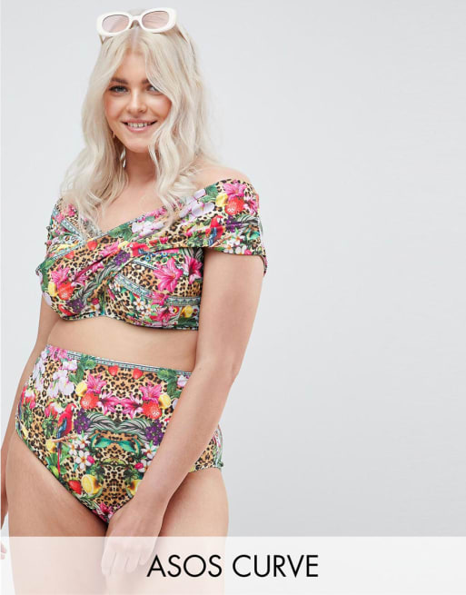 ASOS DESIGN curve cross front underwired bikini set in festival tropical print
