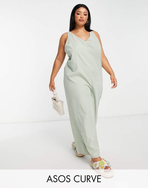 ASOS DESIGN Curve cupro ring back detail dungaree in sage