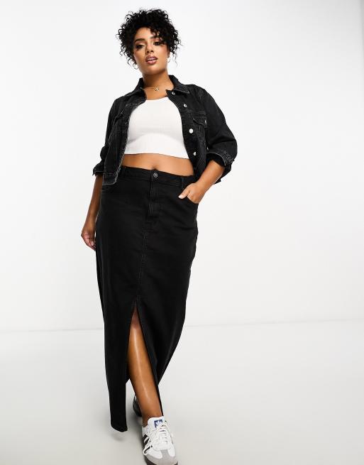 ASOS DESIGN Curve denim maxi skirt with split hem in washed black