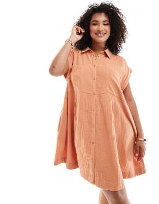 ASOS DESIGN Curve double cloth sleeveless smock shirt dress in rust