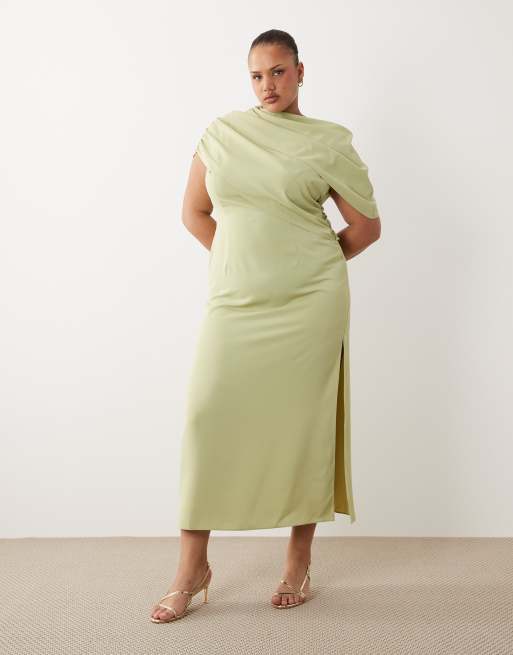 ASOS DESIGN Curve fallen shoulder slinky midi dress in sage
