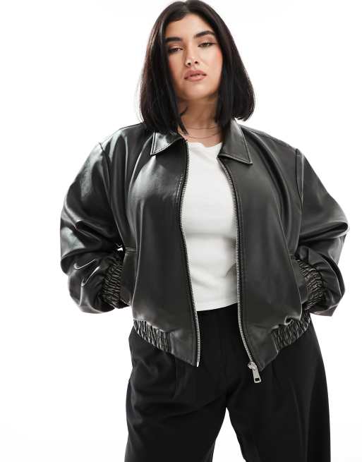 ASOS DESIGN Curve faux leather top collar detail jacket in washed black