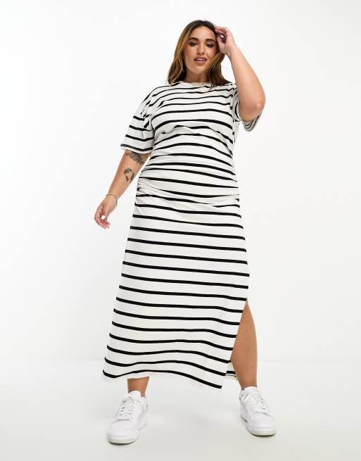 ASOS DESIGN Curve grown on neck midi t shirt dress with ruched side in stripe