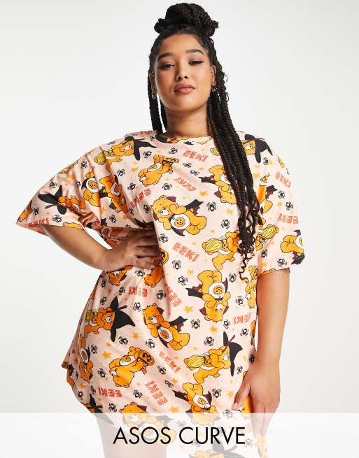 ASOS DESIGN Curve Halloween Care Bears sleep tee in peach
