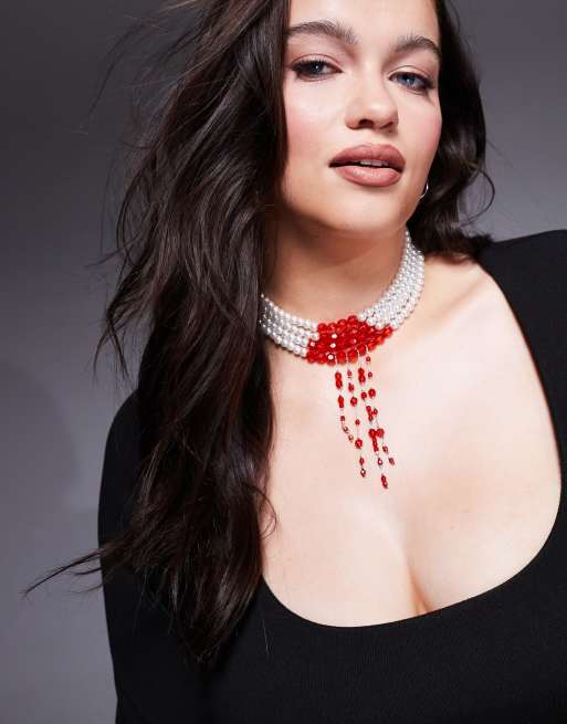 ASOS DESIGN Curve Halloween choker necklace with faux pearl and red bead design
