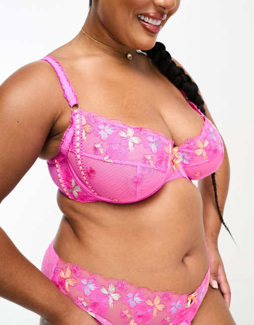 ASOS DESIGN Curve Heather embroidered underwired bra with picot trim in pink