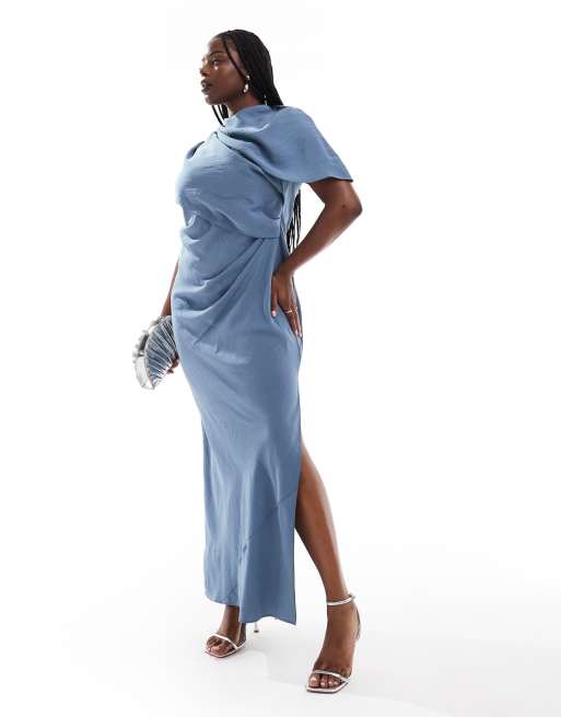 ASOS DESIGN Curve high neck drape bodice cape maxi dress in blue