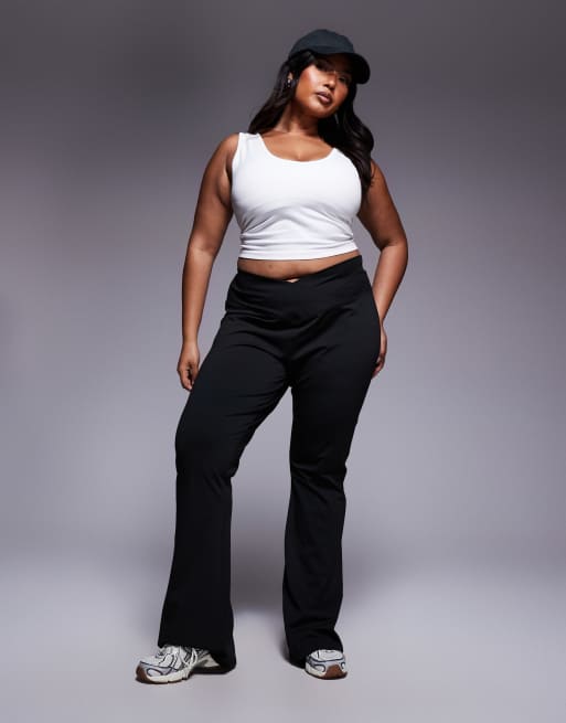 ASOS DESIGN Curve high waist sculpting cross front flare trouser in black