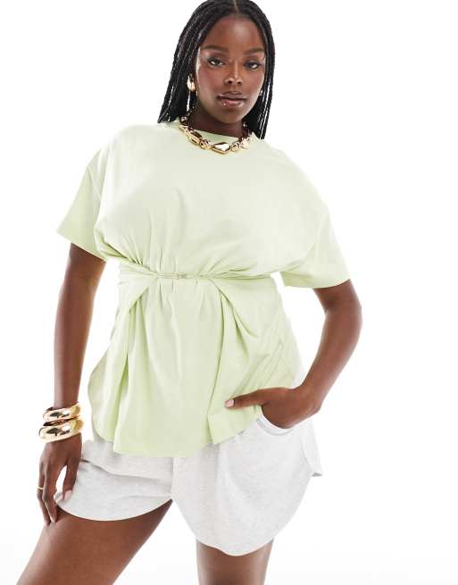 ASOS DESIGN Curve hook and eye t-shirt in green