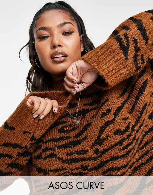 ASOS DESIGN Curve jumper with high neck in tiger print