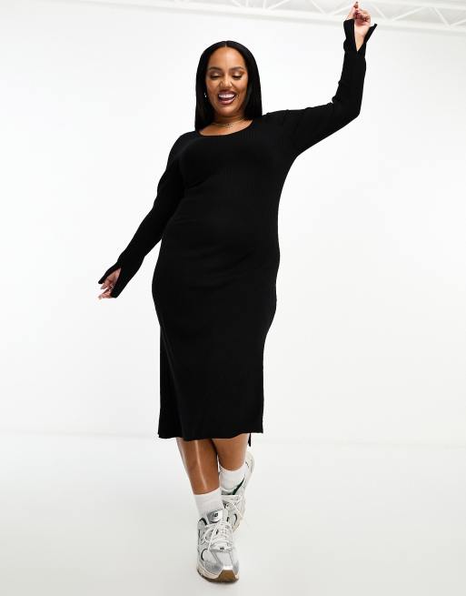 ASOS DESIGN Curve knitted midi dress with v neck in rib in black