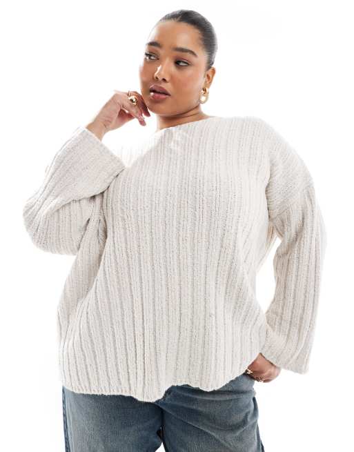 ASOS DESIGN Curve knitted slash neck textured rib jumper in cream