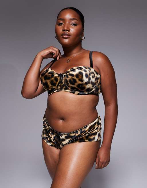 ASOS DESIGN Curve Kora Leopard velvet underwired balcony bra in brown