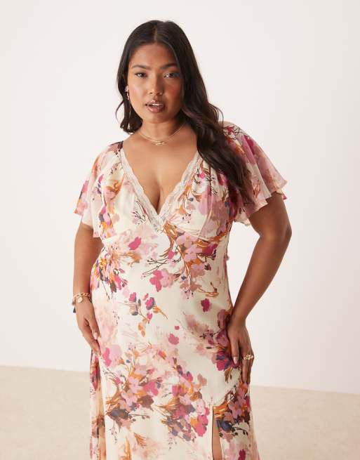 ASOS DESIGN Curve lace insert chiffon midi tea dress in floral print