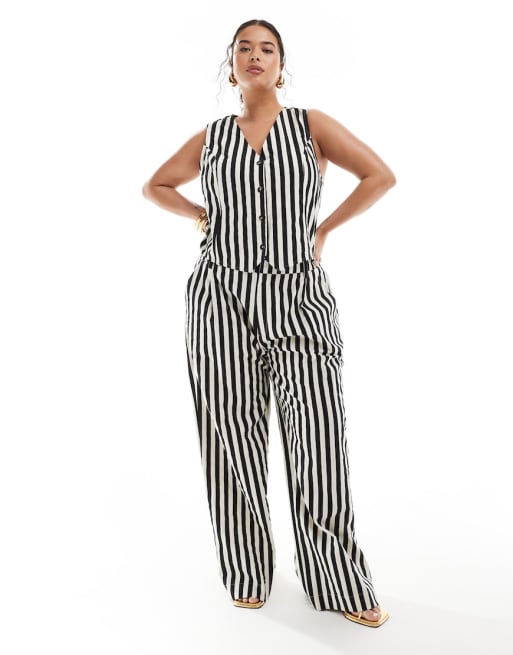 ASOS DESIGN Curve linen co-ord in mono stripe