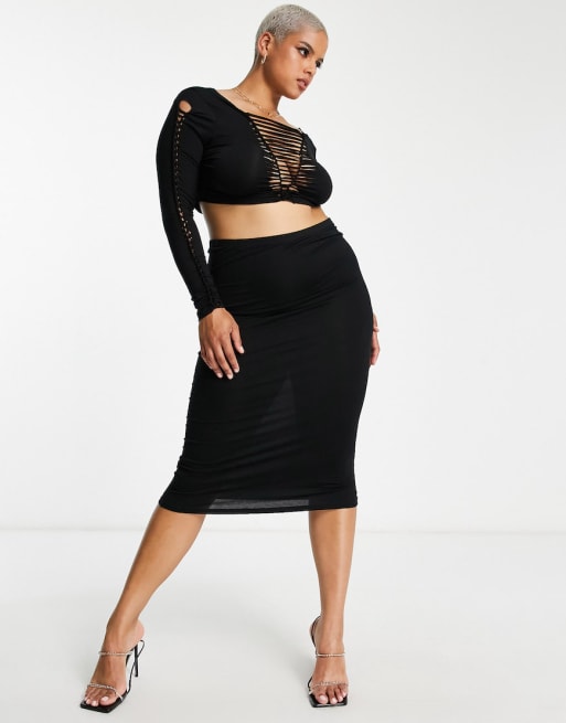 ASOS DESIGN Curve long sleeve ladder detail beach co ord in black
