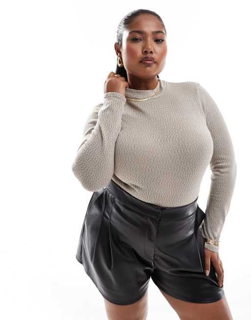 ASOS DESIGN Curve loose knit high neck bodysuit in stone