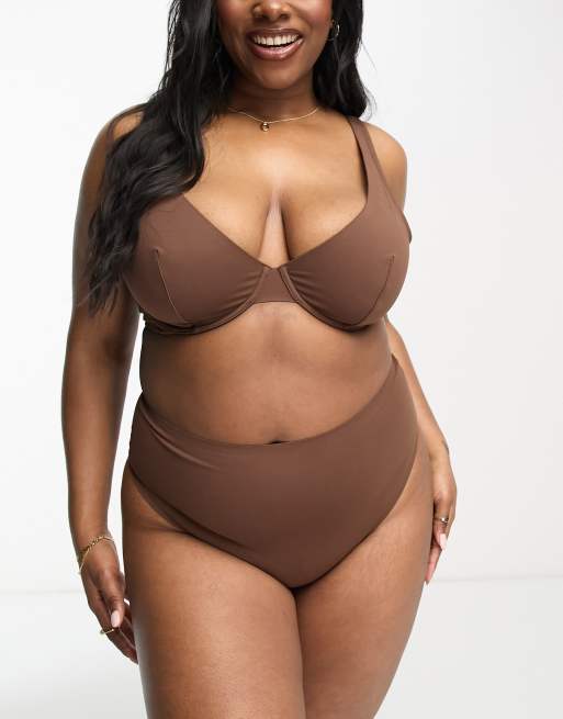 ASOS DESIGN Curve Marina smoothing high-waist thong in brown