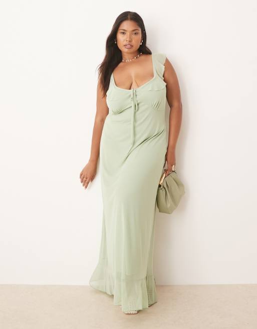 ASOS DESIGN Curve mesh double frill midi tea dress in sage