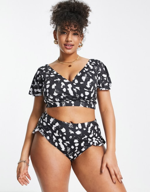 ASOS DESIGN Curve mix and match bikini in mono spot