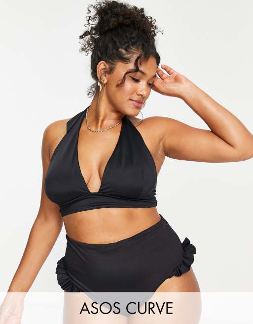ASOS DESIGN Curve mix and match frill high waist bikini bottom in black