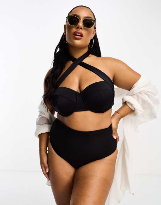 ASOS DESIGN Curve mix and match high waist bikini bottom in black