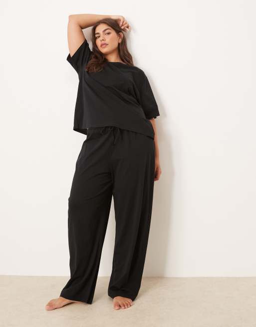 ASOS DESIGN Curve mix & match cotton pyjama trouser in black