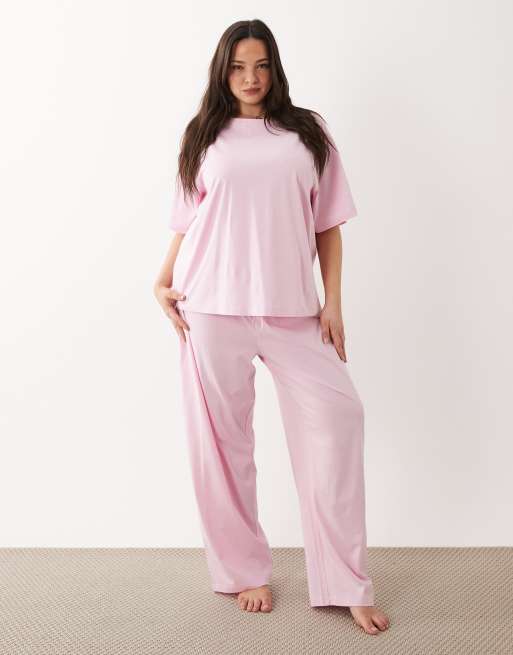 ASOS DESIGN Curve mix & match cotton pyjamas in candy pink
