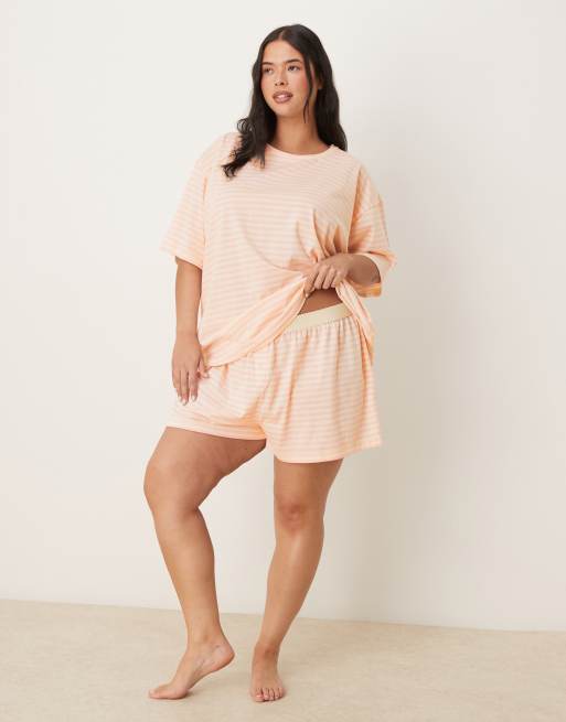 ASOS DESIGN Curve mix & match flippy pyjama short in pink stripe