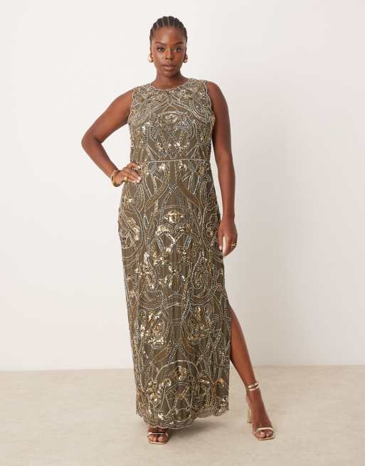 ASOS Design Curve nouveau embellished maxi dress in charcoal