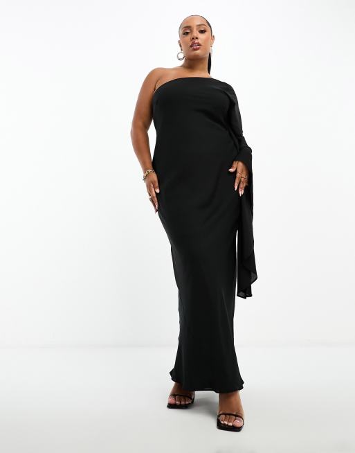 ASOS DESIGN Curve one shoulder exaggerated sleeve maxi dress in black