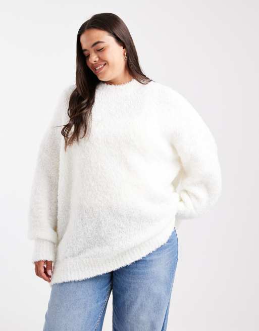 ASOS DESIGN Curve oversized boucle jumper with curved hem in cream