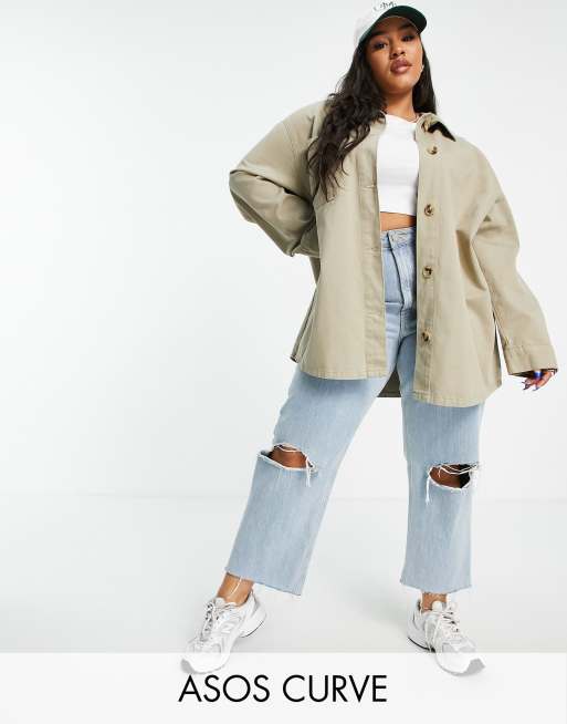 ASOS DESIGN Curve oversized cotton shacket in stone