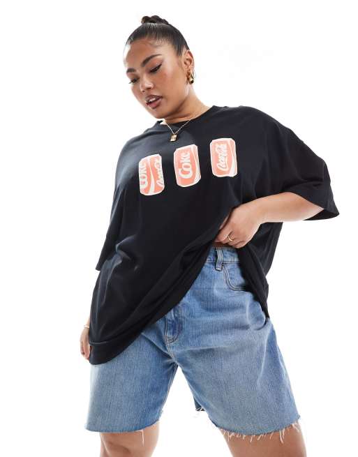 ASOS DESIGN Curve oversized heavyweight t-shirt with coca cola cans licence graphic in black