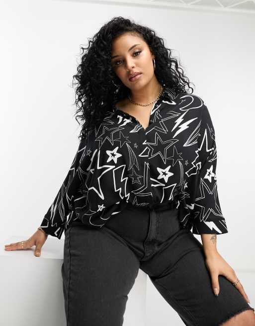 ASOS DESIGN Curve oversized long sleeve shirt in star print
