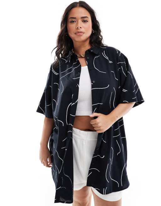 ASOS DESIGN Curve oversized shirt with linen co-ord in mono print