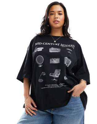 ASOS DESIGN Curve oversized t-shirt with mid-century modern graphic in black