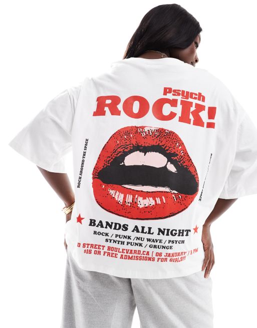 ASOS DESIGN Curve oversized t-shirt with psych rock band lips graphic in white