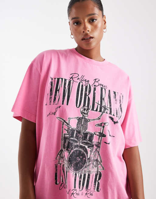 ASOS DESIGN Curve oversized T-shirt with skeleton graphic in washed pink - LPINK
