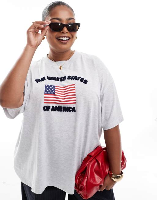 ASOS DESIGN Curve oversized t-shirt with USA flag graphic in grey marl