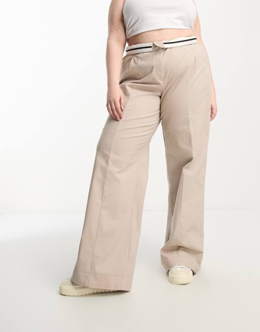 ASOS DESIGN Curve oversized wide leg chino trouser in sand