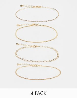 ASOS DESIGN Curve pack of 4 anklets with chain design in gold tone