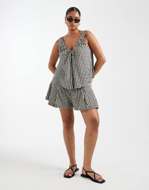 ASOS DESIGN Curve pleat front co-ord shorts in gingham