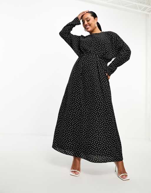 ASOS DESIGN Curve pleated detail waist maxi dress in mono spot