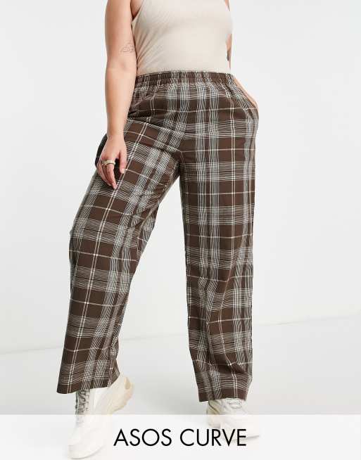ASOS DESIGN Curve pull on trouser with hammer loop in brown check