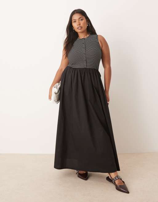 ASOS DESIGN Curve racer button down midi dress with poplin skirt in mono stripe